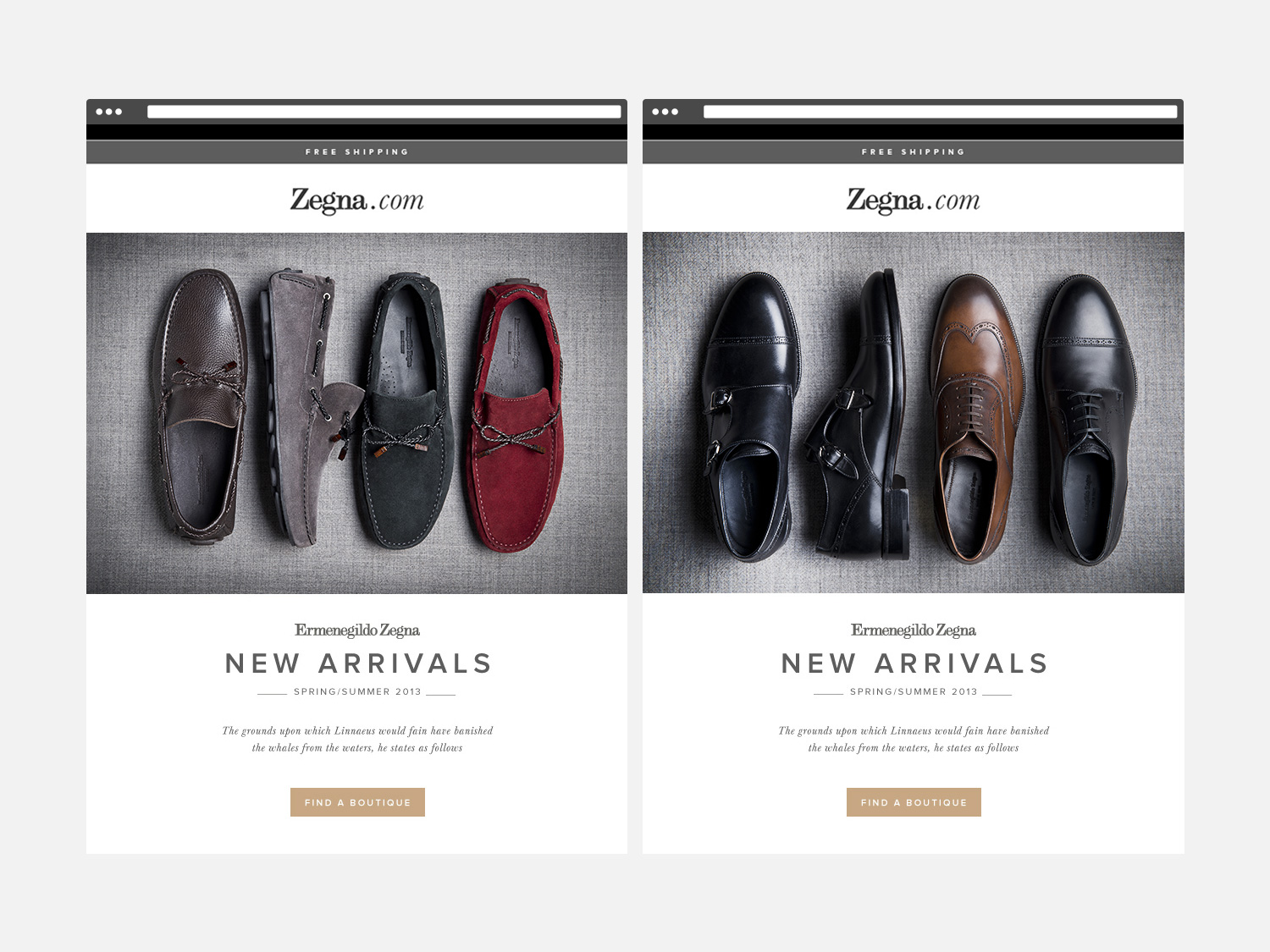 Created a design that promotes the marketing goals and objectives of Zegna, while visually improving the site's look and feel and overall user experience.