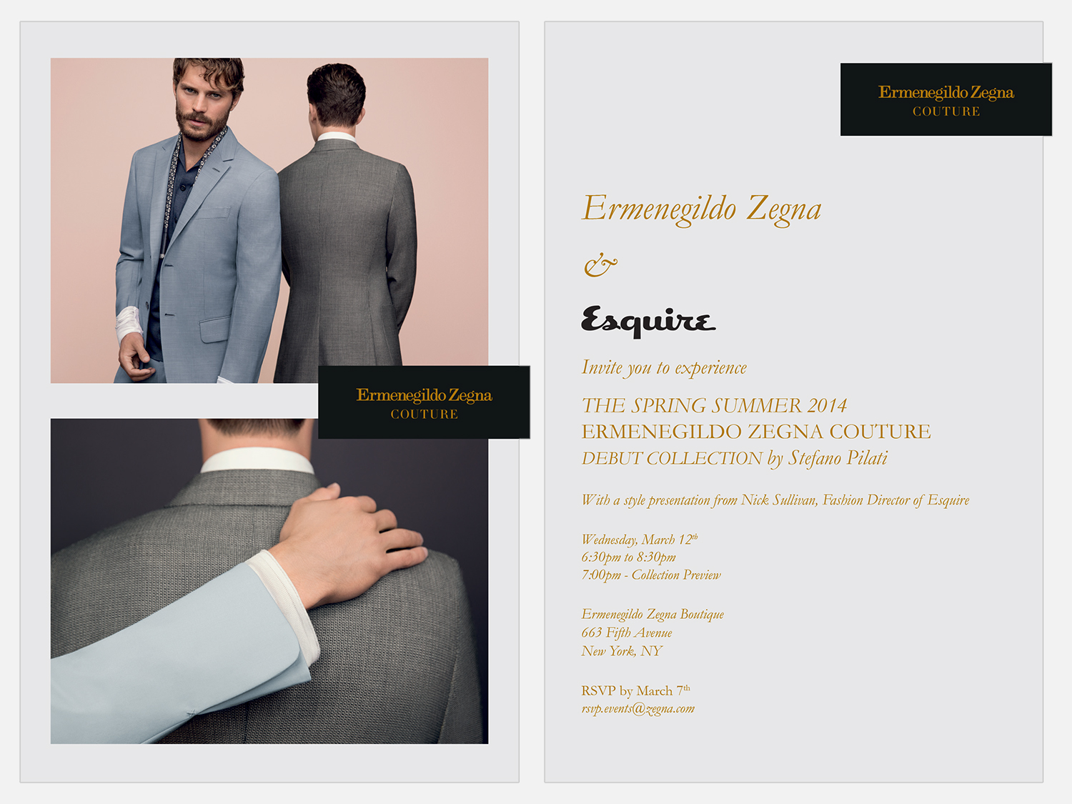 Concept, design and execute the marketing for Ermenegildo Zegna. Worked with the visual merchandising team in implementing a cohesive message.